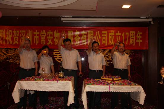 一路攜手 相伴有你======熱烈祝賀常安物業成立十七周年十七年的發展,十七的征程,十七年的艱辛,十七的榮光。承載著我們累累的果實,迎來了常安物業十七歲的生日。回首十七年的崢嶸歲月路,在以張武董事長為核心的領導班子帶領下,一步一個腳印,常安物業呈現一片繁榮昌盛,欣欣向榮的景象。2012年4月27日下午2:00在前海花園舉辦了“慶祝常安物業成立十七周年”慶典儀式,參加本次活動的有社區工作站領導、轄區派出所領導、常安物業領導及員工,達200多人。在慶典儀式中,公司董事長張武先生發表了熱情洋溢的講話,并代表常安物業全體員工向各級政府部門以及長期幫助公司成長發展的客戶和社會各界朋友表示衷心地感謝。展望未來,充滿期待,他表示在各級領導和各界朋友的關心支持下,常安物業有決心也有信心續寫更加燦爛、輝煌的新篇章。
