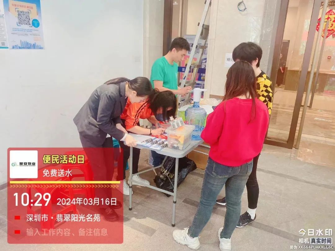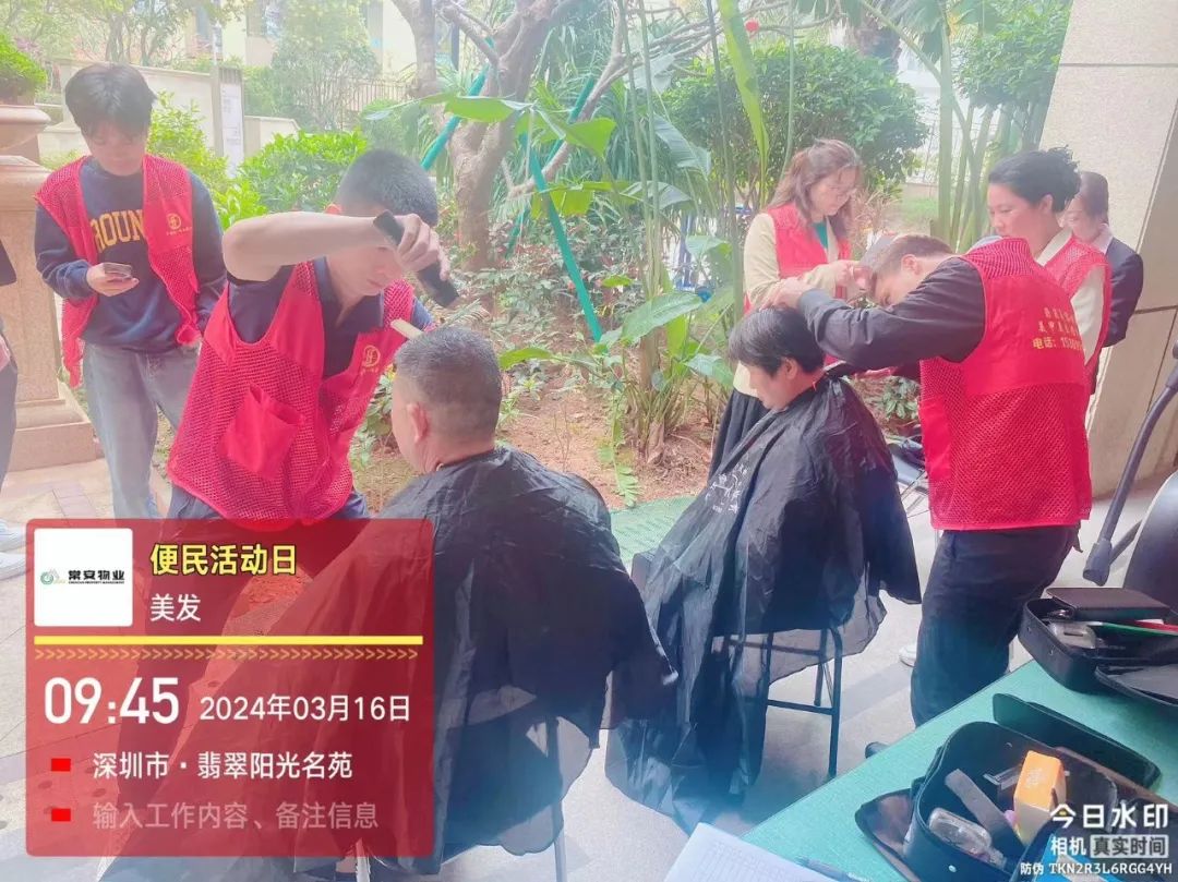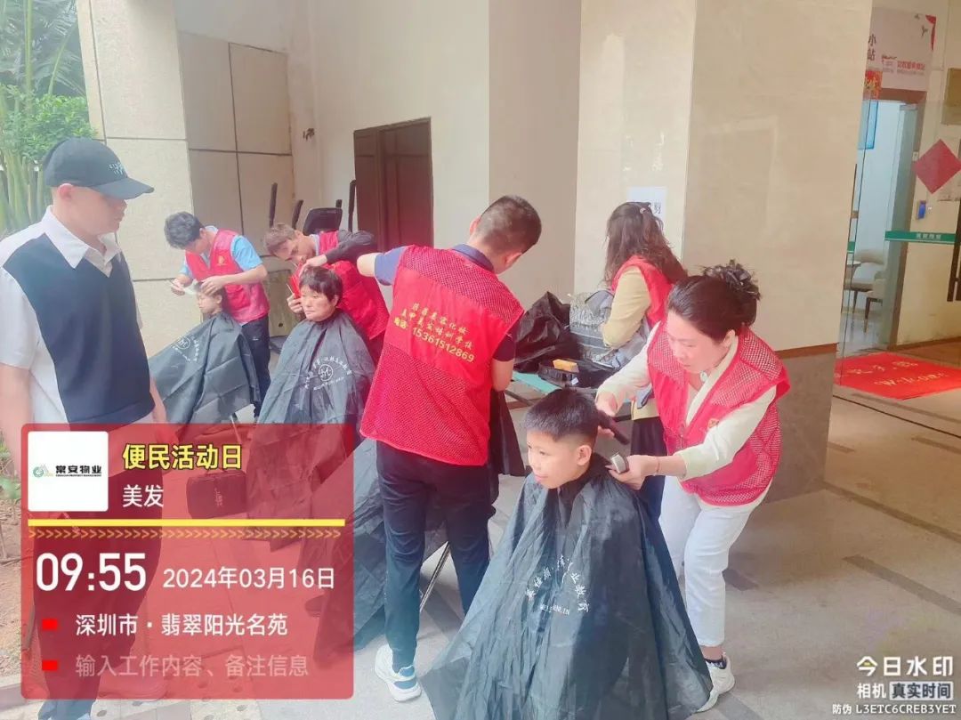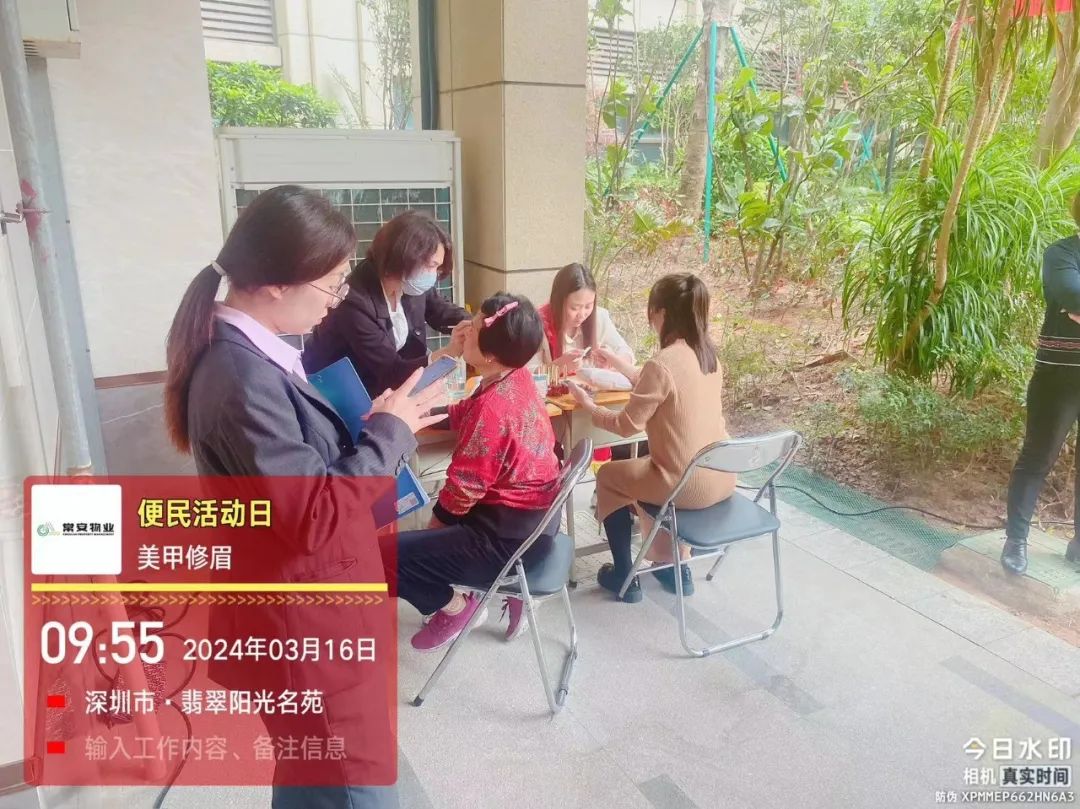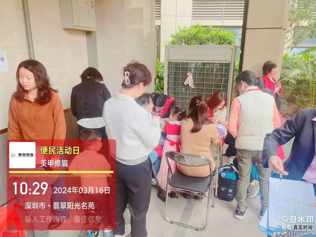 關注每一個細節,為您的生活添彩!為方便本小區業主和住戶的居家生活,提升業主滿意度,提倡助人為樂,創建和諧小區。常安物業翡翠陽光名苑小區便民活動,在2024年3月16日(周六)上午09:30-12:30如期舉行:服務項目包括送水票、清洗服務、義剪、義診、美甲、修眉,獲得業主一致好評。